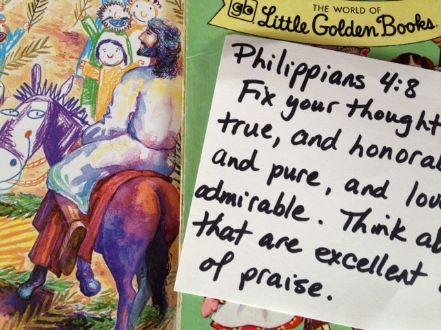 After hosannaI think children’s books linger in our minds a long time.  Our whole family was worshiping together at a church in Charlotte when I realized the pictures on my mind during singing were from a children’s book.  A book I had read back in the 60’s while living in St. Catharines, Ontario.